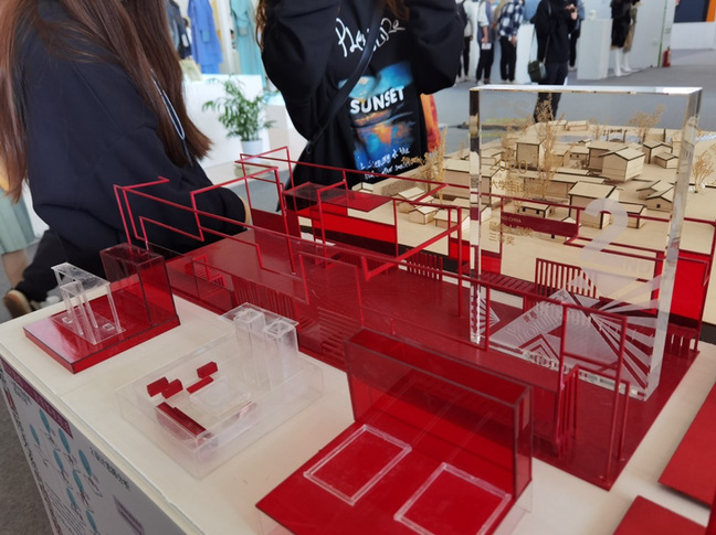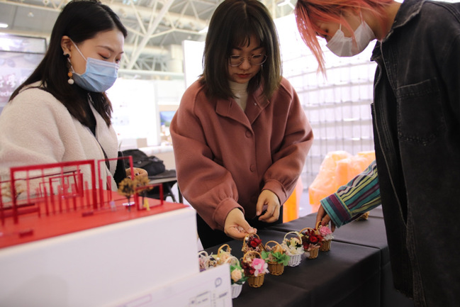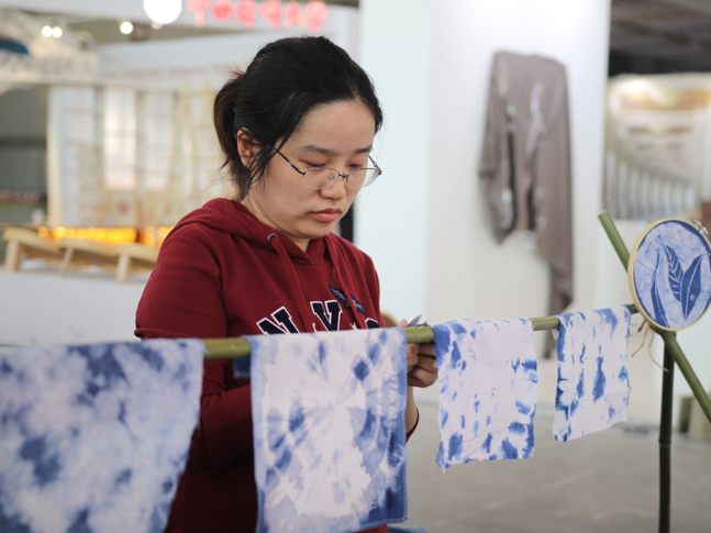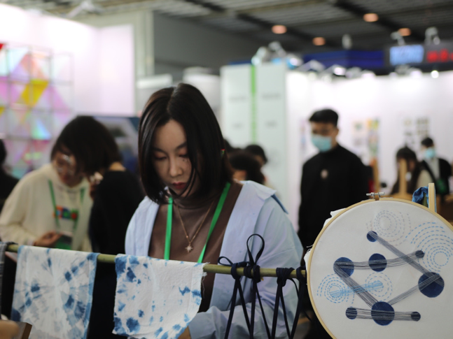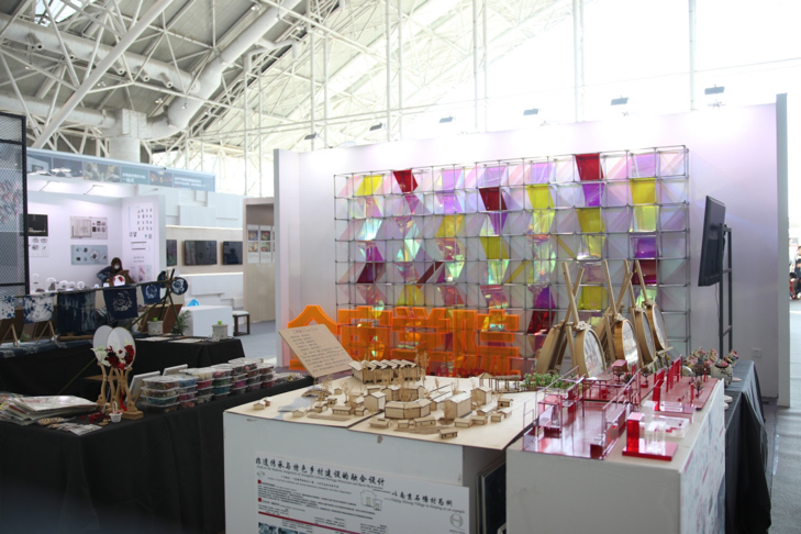 我校富有特色的展陈设计,独具匠心的设计作品获得了众多领导和参展嘉宾的一致好评。有精致的模型、美丽的扎染、可爱的小花篮等等。
