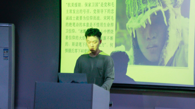 王琦皓同学讲述了抗美援朝时期“冰雕连”的事迹,让我们看到了志愿军们坚不可摧的战斗意志,打不垮、冻不倒,勇往直前的战斗精神。