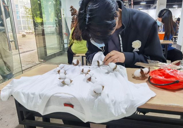 创新性的使用新疆棉花来装饰T恤,让人眼前一亮