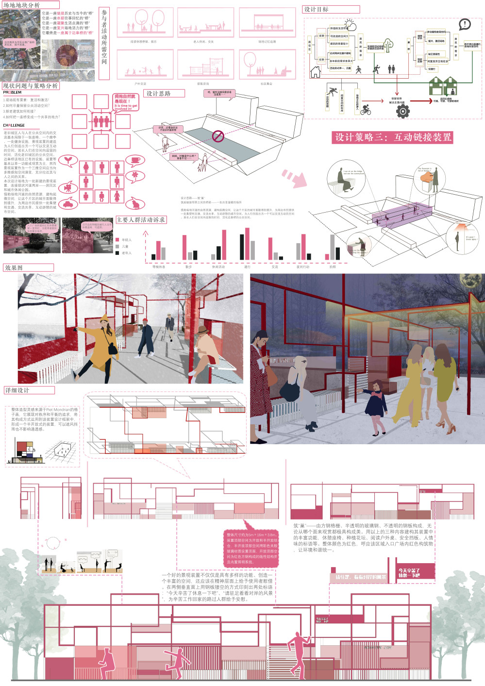 毕业设计(论文)题目《老旧城区存量更新视角下的南京迈皋桥景观装置设计研究》,选题基于城市存量更新视角,研究南京迈皋桥景观装置设计。通过对城市存量更新理论资料的搜集、场地现状调研完成对迈皋桥景观装置设计的雏形,作为南京迈皋桥街道存量更新计划的一部分,旨在推动公众参与,以共谋、共建和共享的方式,打造一批具有文化特色的景观装置,促进城市双修,增强市民的获得感。历史文脉的延续与场所感的营造。城市是文化的容器,一座城市的历史与未来是彼此共生的。在城镇化的高速进程中,大量的城市存量社区采取了“大拆大建”的更新手段。传统的大规模更新改造,不仅割裂了地域文化,还破坏了城市肌理。因此,老城区更新改造应通过“微更新”模式,用小而美的改造方式,保证了城市历史文脉的延续以及场所感的营造。