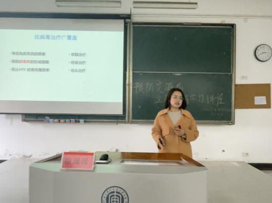 讲座上,徐圆圆医师通过对详实数据的分析、专业知识的讲解,使在场大学生对艾滋病有了进一步的了解。徐圆圆医师叮嘱同学们要树立健康的生活观念,在日常生活中加强体育锻炼,增强自身免疫力,提高警惕和加强预防艾滋病。