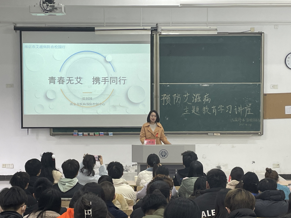 为进一步宣传艾滋病预防知识,帮助学生正确认识艾滋病,增强学生的自我保护意识和社会责任感,在2021年12月1日第34个“世界艾滋病日”来临之际,williamhill威廉希尔分团委联合校红十字会邀请到了南京市疾病预防控制中心艾滋病性病防制科科长助理、南京预防医学艾滋病性病专业学会副主任医师徐圆圆到我院开展艾滋病防治知识讲座。