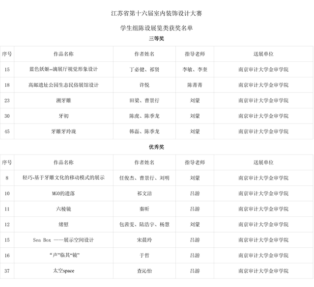 近期江苏省第十六届室内装饰设计大赛作品评审会圆满落幕。在williamhill威廉希尔多位教师的悉心指导下,我院学生在此次大赛上荣获学生组二等奖1项、三等奖12项、优秀奖24项。