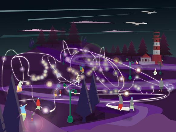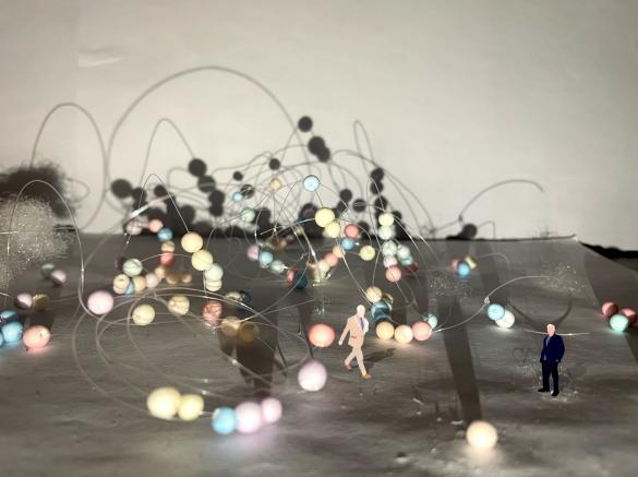 (实物模型材料:鱼线、彩色泡沫球)
