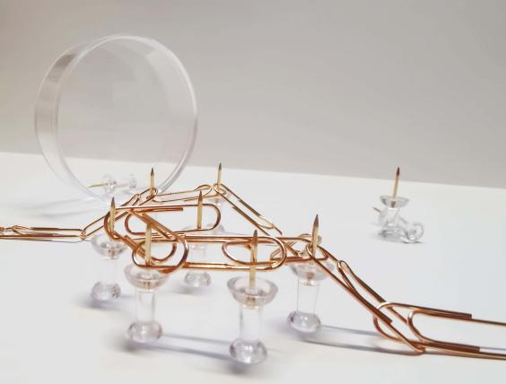 (实物模型材料:回形针、图钉)