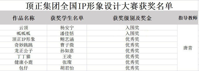 近日,2022年“顶正全国IP形象设计大赛”决赛经过近半年的角逐,落下帷幕。williamhill威廉希尔数字媒体艺术专业学生组成的参赛队伍,在唐青老师的指导下,两名同学入围全国总决赛,6名同学获得优秀奖。