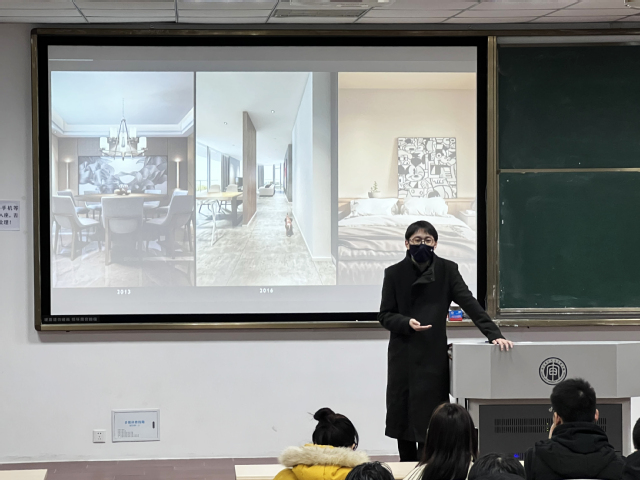 王玮老师详细介绍了他在设计中对市场的分析和对设计主题亮点的把控,并特别讲述了他在设计中如何突出设计优势的方法。此外,王老师还分享了他获奖作品的设计思路,引导同学们从自身兴趣点出发,广泛吸取知识,开阔了同学们设计视野的同时,增加了大家对专业的认同感。