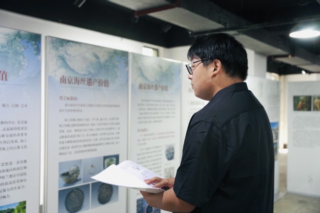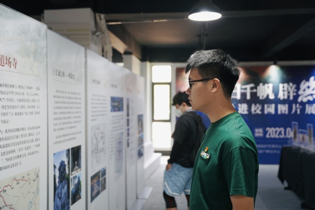 此次展览以时间为轴线,将龙江船厂遗址、浡泥国王墓、郑和墓、洪保墓等南京古迹遗址逐一呈现,48块图文并茂的展板和11块文物雕刻立牌,让观展师生沉浸于古代海上丝绸之路的历史长河中。