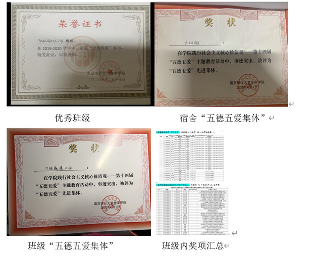 她带领班级获得优秀班级,优良班风,以及五德五爱先进集体,优秀团支部,所在宿舍8-621为五星级宿舍,以及文明宿舍。