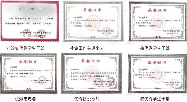 将近四年的班长生涯让她收获颇多。工作上,她以“以身作则,脚踏实地”时刻勉励自己,带领班级先后获得“优良班风班”和“先进班集体”的荣誉称号。在做好班级建设的同时,也注重自身能力的发展。大三学年她获得江苏省”优秀学生干部”的荣誉称号,连续两年获得校级“优秀学生干部”“社会工作先进个人”。课余,她积极参加志愿服务共22次,获得“优秀志愿者”称号。身为党员和班干,疫情期间,她积极参加志愿巡逻工作,为隔离的同学送去饭菜,并获得“优秀防疫标兵”称号。身为自管会办公中心副主席,她组织了多次大型活动,获得”优秀干事”荣誉称号。身为williamhill威廉希尔学生党支部宣传委员,她做好每一次的官微推送、宣传工作和材料的撰写,2022学年,《最佳党日活动》获得二等奖。