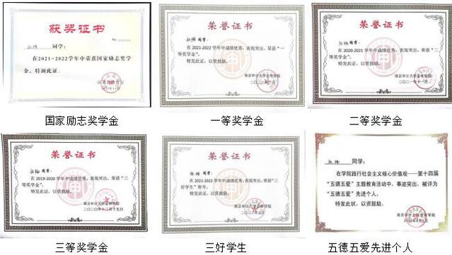 学分绩点排名同专业第六,综测排名专业前十。曾获国家励志奖学金、一等奖学金、二等奖学金、三等奖学金,连续两年获得“三好学生”荣誉称号。连续三年获得“五德五爱先进个人”。通过英语四级、计算机一级、普通话二级甲等考试。担任“绿色环保理念下的幼儿自然认知工坊设计研究”大创项目主持人并成功结项。通过高中美术教师资格证笔试考试。
