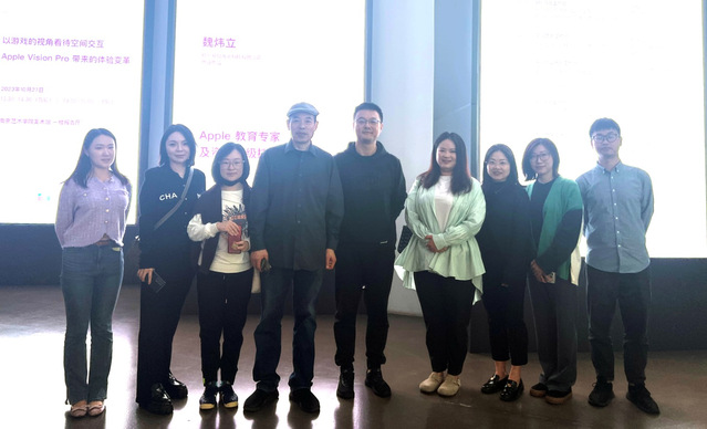 南京艺术学院校长张凌浩教授以“空间计算体验的思考:从内容到体验”为题展开主旨报告。他在报告中提出,面对科技发展对高校教学的冲击,设计发展必须打破思维禁锢,结合多领域,多学科,积极融入新科技。以数字中国建设为出发点,展示了未来智能化AR/MR设计结合的特点和教学思考。他指出场景(设计思维驱动的内容开发)、体验(加强用户体验的研究)、一致性(复杂系统交互的简单)、新美学(融入与识别)将是AR/MR设计的重要关注点,需要将传统优势、数字化创新及多学科交叉主动融入设计教学课程当中,加强数字技术与文化、设计之间的关联与转化。Apple 大中华区教育事业部总经理 William Wong,以“Apple在高等教育中的应用”为主题进行演讲。分享了Apple在产教协同、创新人才培养等方面的成果。