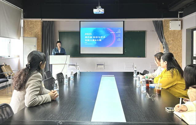 周老师首先对江苏省科普美术家协会的发展理念和发展重心做了介绍,并明确指出未来要高举“科学与艺术”大旗,主动搭建“科学与艺术”相融平台。其次对交流分享的重要内容作了讲解,详细介绍了本次大赛的六个赛道:1、元宇宙未来艺术(数字空间XR组、AIGC组);2、动画与数字艺术(产品组、平面组、摄影组);3、智慧光影艺术(专业组和学生组);4、公共艺术(传统公共艺术组和新媒体公共艺术组);5、青少年儿童艺术(平面组、立体作品组和数字作品组);6、教学技能(高等院校组和高职院校组)。交流期间周老师不仅给我们分析每个赛道往年获奖的优秀作品还指出今年作品的创作倾向,要紧贴当下我们数字媒体艺术的发展方向,融入更多的创作思路和技术,建设未来数字中国。