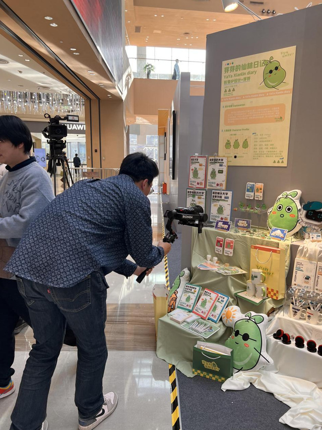 11月21日下午,首届“大学·城市”仙林大学城艺术节书画、摄影、设计大赛获奖作品展在金鹰湖滨天地2期中庭揭开面纱,共计157件作品脱颖而出,我院视觉传达设计专业有6组作品参与展出,教研室肖扬老师、衣晓东老师作为学院代表出席本次展览。本次参展作品中,韩颖、潘杰、尹艺嘉三位同学共同创作的一等奖作品《芽芽的仙林日记》,在展览现场备受好评。南京电视台也对其作品指导教师——肖扬老师进行了采访,同时也对该作品进行了拍摄与记录。