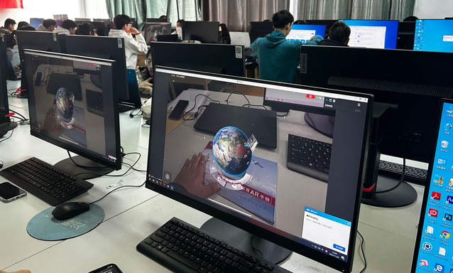 首先,作为视网么AR信息科技有限公司总经理的张帅博士,结合《国家版图科普AR教育手册》、《党的二十大精神学习手册》、《结营纪念册》中的相关内容,通过视网么AR软件,带领学生领略了数字化元宇宙作品。他从元宇宙概念、AR增强现实的相关技术、VR虚拟现实技术等多方面展开讲解。同学们对未来“元宇宙增强现实”技术提出了自己的看法与意见,与张帅博士展开讨论。针对同学们的专业课程实践及毕业作品设计,张帅博士建议可结合当下的元宇宙技术及AR创想进行设计创作。