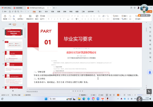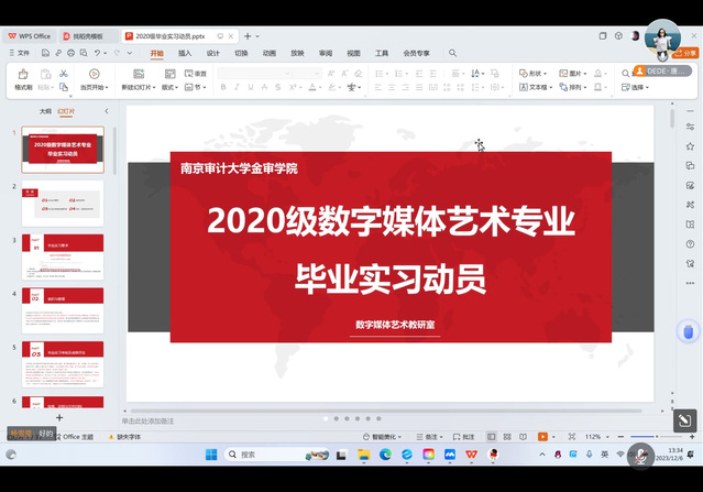 本次会议采取线上、线下相结合的方式,由数字媒体艺术教研室主任唐青老师全程线上把控,青年骨干教师董端阳老师负责线下组织。数媒专业全体教师及2020级学生参与,保证毕业实习动员全覆盖。