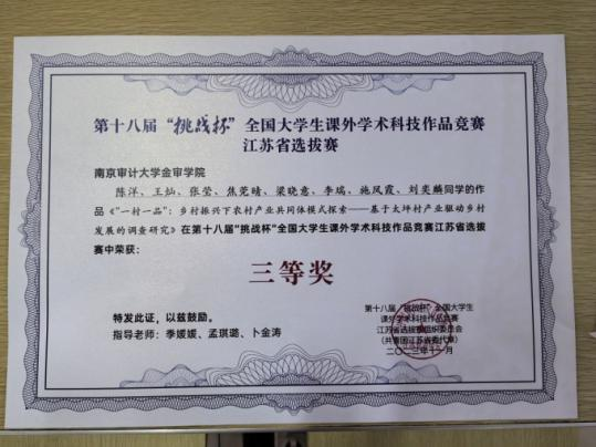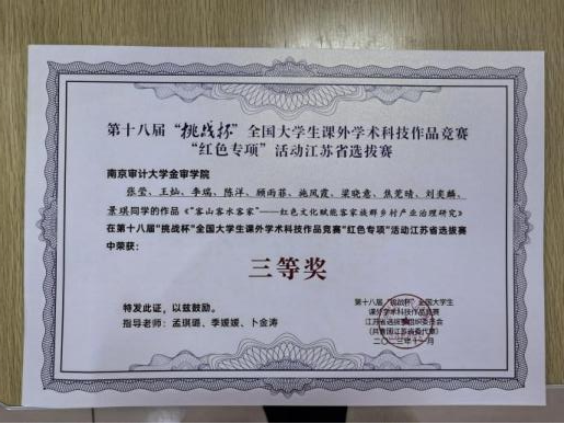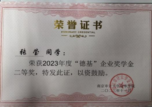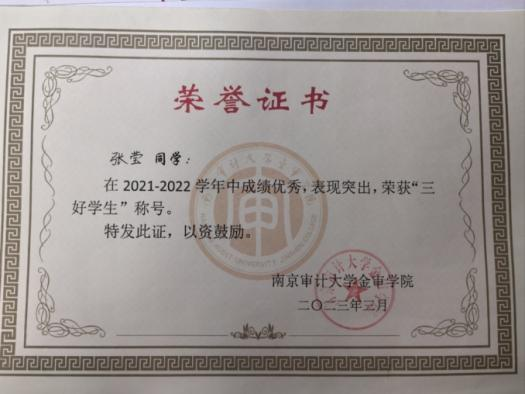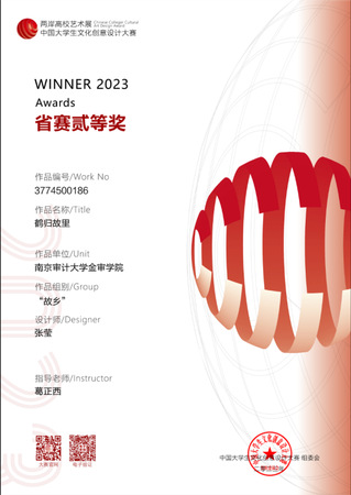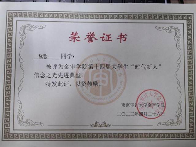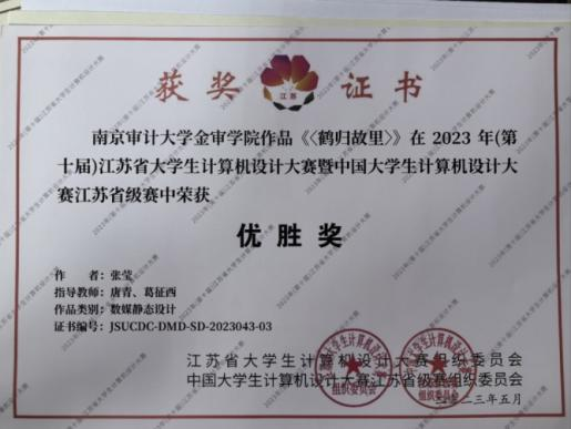 在校期间综合测评成绩班级第一,获中国大学生文化创意大赛国奖、中国大学生文化创意大赛省二等奖、江苏省计算机设计大赛优胜奖等荣誉二十余项,两次参与全国大学生系列科技学术竞赛均获得省级以上奖项;获得校二等奖学金、德基企业奖学金二等奖,以及校“三好学生”、“优秀团员”、“优秀学生干部”、“优秀志愿者”、校社团联合会“优秀干部” 、校学生会“菁英班优秀成员”等荣誉称号。