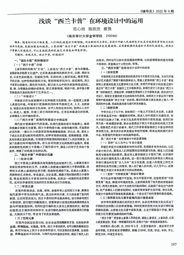 蔡强在专业学习上他博学慎思,潜心求知。上学年综合素质测评名列专业第一。为提高自身综合能力的发展、提升专业自信,他积极组织团队参加江苏省大学生实践创新训练计划项目,此次项目内容是将非遗文化进行数字化提取与数字化转换的设计,将传统非遗文化以全新的面貌展现在大众视野。在创作过程中,他始终坚持守正创新的原则,在对传统文化深刻内涵继承的基础上外化包装、予以创新。先后荣获了江苏省“星•空间杯”室内设计大赛“铜奖”、江苏省第三届大学生网络文化节“三等奖”等荣誉。