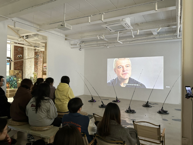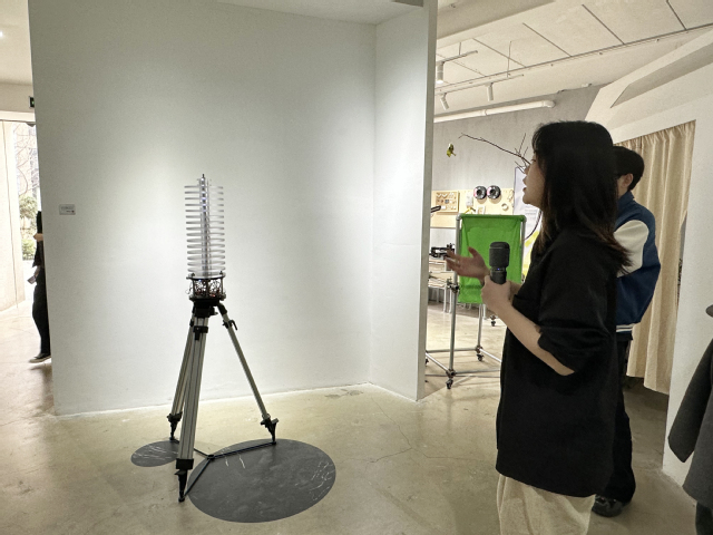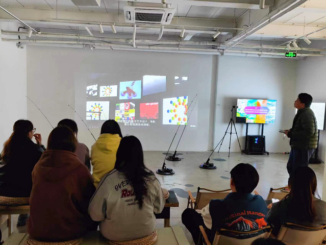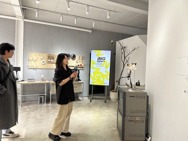 讲解员生动的讲解各个作品的创作理念与思路,将设计与日常相结合。展内有交互艺术装置、声光交互装置、机械交互装置、AR增强现实装置等。