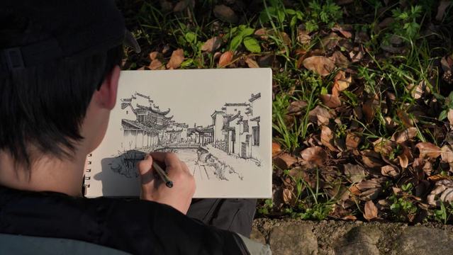 傍晚,课程进入到集中授课和讲座环节,视觉传达设计专业的刘晓宇老师作为主讲人对西递古村落的研究以及《如何画好建筑速写》为题进行授课,讲解了建筑速写的多种技法,展示了各种不同的绘画风格,解读了国内外众多优秀案例,让学生们对此次调研与写生有了更加深刻的认识,为接下来的写生打好坚实的基础。