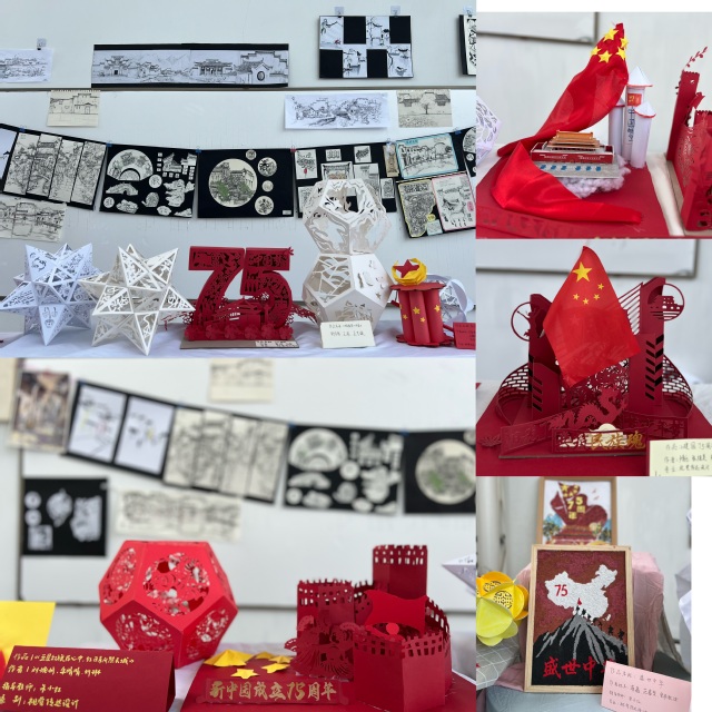 《设计基础》课程的展区则更注重对学生设计基本功的考察。从平面设计到立体构成,从色彩运用到材料选择,学生们的作品展现了他们对设计原理的掌握和运用。现场庆祝中华人民共和国75周年主题、廉洁主题以及传统节日文化主题作品,不仅通过设计作品展示了独特的文化魅力,传播了中国的传统文化,还具有实用性,充分展示了学生们在设计领域的专业素养和潜力。