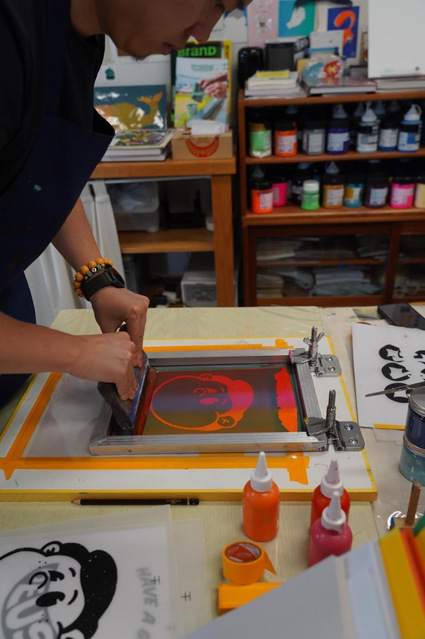 在为期数天的培训中,肖扬老师全面系统地学习了丝网印刷的各个环节,从理论讲解到实践操作,从材料选择到色彩搭配,都进行了深入细致的研究。他亲手操作各种专业设备,从制版、涂胶、曝光到印刷,每一个环节都力求精准无误,力求将理论与实践完美结合。