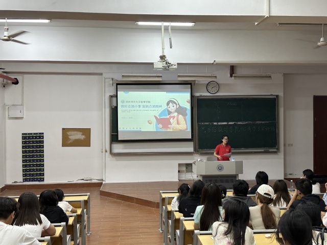 21级视觉传达2班尹艺嘉负责的关于学习方法分享宣讲活动在这里展开。新生们全神贯注地听着讲解。