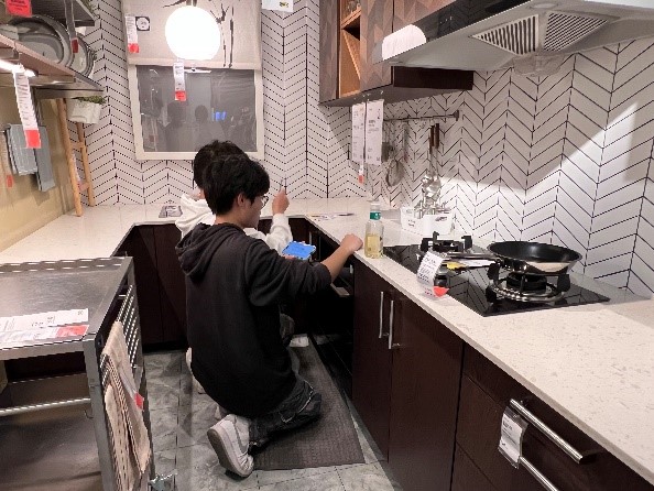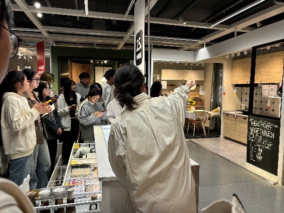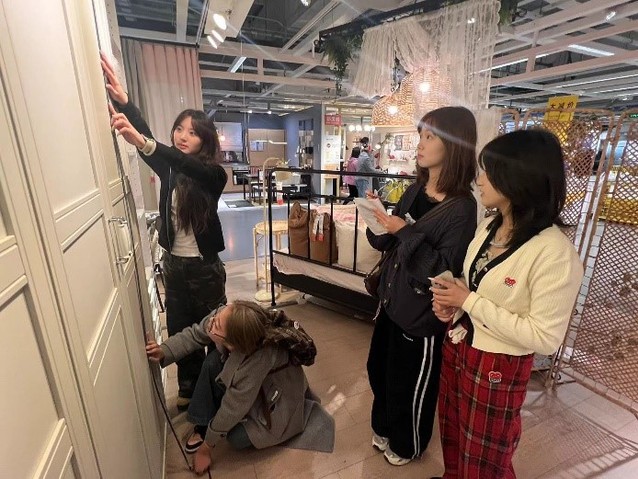 走进宜家,学生们立刻被这里琳琅满目的家具和精心设计的家居空间所吸引。他们先后参观了宜家的桌椅、柜体及各种家具布置,观察了它们的材料运用、空间布局等方面的特点,并详细记录了相关数据。在调研的深入进行中,学生们逐渐领悟到人、家具、环境三者之间微妙而紧密的联系,这使他们能够将课堂所学的人机工程学知识更加有效地应用于实践之中。