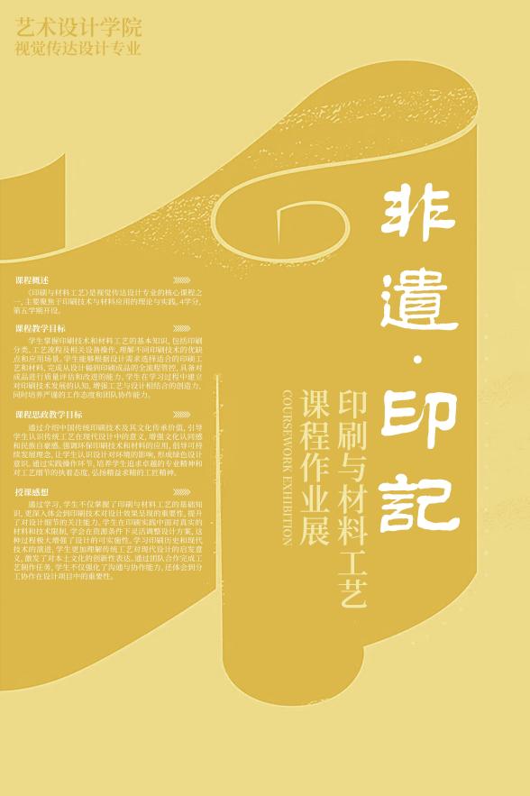 本次作品展览是《印刷与材料工艺》课程的重要实践环节,既是课程成果的展示,也是教学理念的延伸。在肖扬老师的指导下,学生们深入学习了印刷工艺与材料特点,在视觉传达设计专业的实验室内,通过实际操作掌握了从概念设计到成品制作的完整流程。