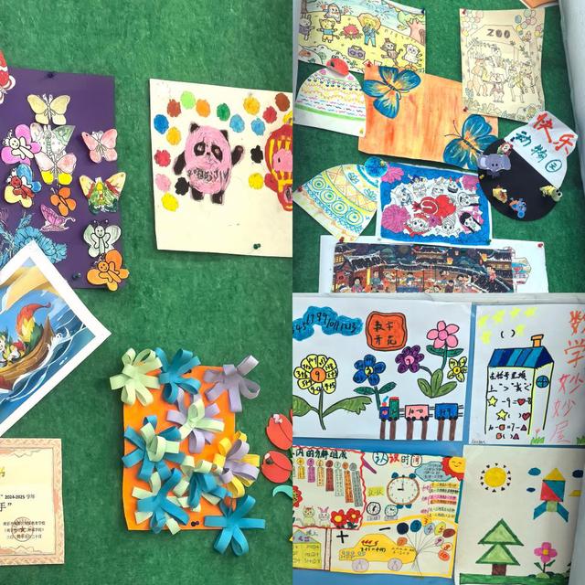 班级内被布置得很温馨,温暖的阳光从窗外照进来,打在了墙壁的画上。这吸引了我走近观看,这些手笔稚嫩纯粹的画风,让人感受到他们内心丰富的情感世界。