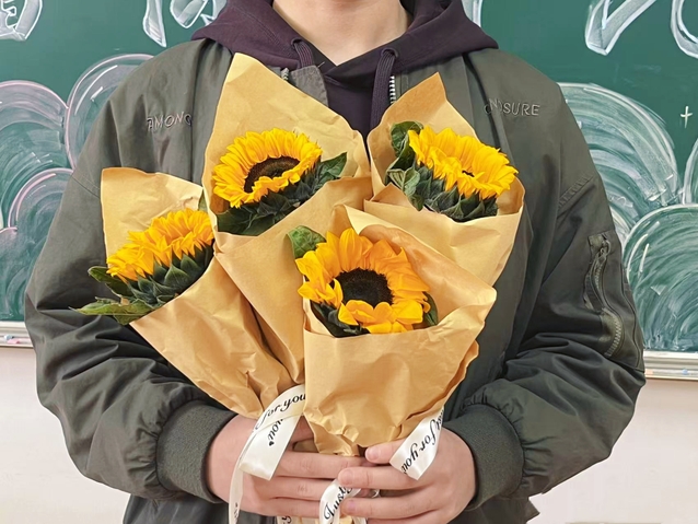 考研学子手持向日葵