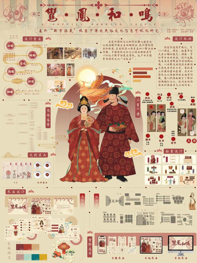 《鸾凤和鸣--基于“数字语义”视角下传统民俗文化信息可视化研究》这部作品以其独特的创意、精湛的制作技艺和深刻的文化内涵,赢得了评委们的高度评价。作品以传统文化在融入世界文化的同時保持自身的独持性为研究点,从传承及发展途径着手,依托于数字语义来实现。使千百年优秀的传统文化“活起来”,弘扬了中华民族优秀的传统文化。