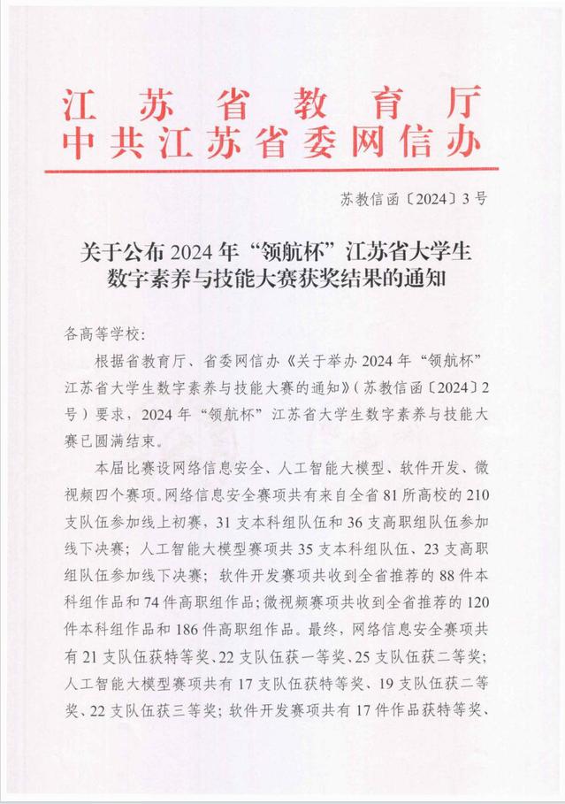 近日,2024年“领航杯”江苏省大学生数字素养与技能大赛的比赛结果正式揭晓,williamhill威廉希尔数字媒体艺术系在此次大赛中取得了令人瞩目的成绩。本次大赛由江苏省教育厅主办,旨在提升广大师生的数字素养,推动信息技术与教育教学的深度融合创新。