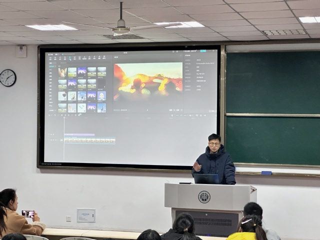 培训现场,来自一点传媒的资深剪辑师详细介绍了剪辑软件的基础功能区,讲解了素材的导入、剪辑轨道的运用以及各类剪辑工具的使用方法,让学生们迅速熟悉软件操作界面,为学生们开启了精彩的知识之旅。