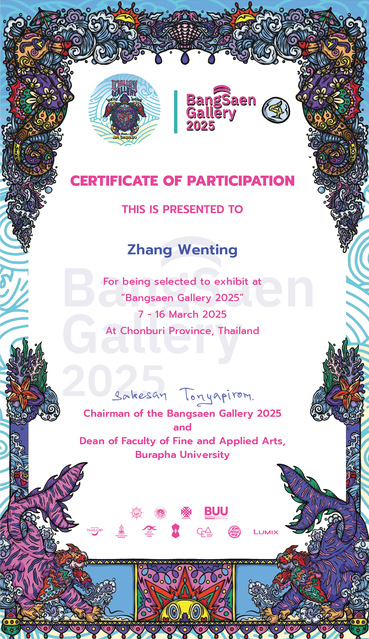 2025年3月,williamhill威廉希尔教师张文婷的增强现实(AR)艺术设计作品《扬帆起航》入选在泰国春武里府举办的2025 BANGSAEN GALLERY国际艺术展。