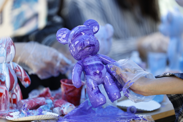掌握基本技巧后,参与者纷纷执起画笔与颜料,开启专属创作之旅。有人精心遴选色彩,构建和谐美妙的组合;有人随性而为,任颜料在流体熊上肆意流淌,造就惊喜图案。创作过程中,众人沉浸于艺术世界,忘却外界纷扰,尽情释放压力。