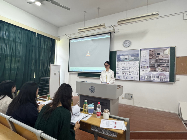 答辩现场,学生通过多媒体演示、实物模型及设计图纸,系统阐述选题背景、研究方法与成果价值。评审专家针对论文核心观点、技术路径及落地可行性逐一提问,既有对“老旧社区公共空间微更新策略中用户参与机制”的深度追问,也有对“模块化绿色建筑设计中材料循环利用效率”的精准建议。学生结合调研数据与实践案例从容应答,并认真记录修改意见。答辩组组长徐晨艳老师评价道:“本届学生展现出较强的跨学科整合能力,部分作品在智慧城市、低碳景观等领域具有鲜明时代价值。”