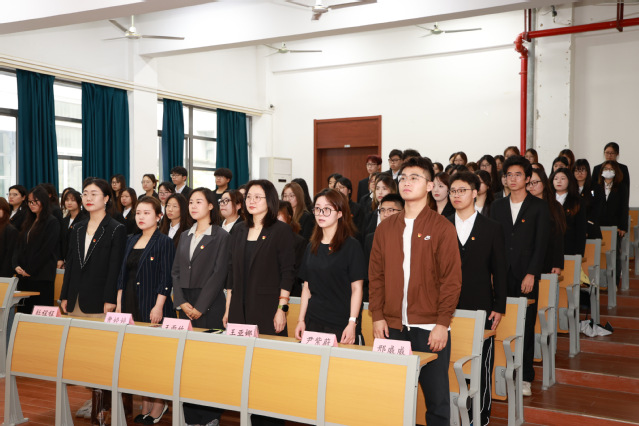 仪式现场,全体起立奏唱国歌,激昂的旋律中,青年学子们身姿挺拔,目光坚定,用洪亮的歌声抒发对祖国的热爱与忠诚,展现出新时代青年昂扬向上的精神风貌。