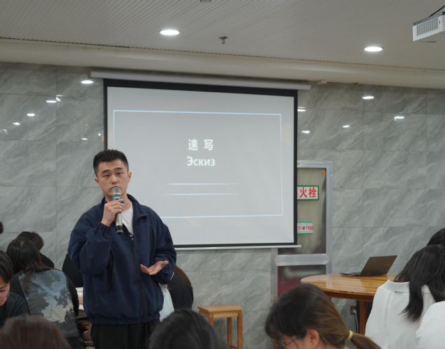 5月11日晚,williamhill威廉希尔视觉传达设计、数字媒体艺术、环境设计三个专业的师生齐聚黄山述理写生基地报告厅,共同聆听了视觉传达专业教师刘晓宇主讲的《速写绘画表现》学术讲座。作为俄罗斯列宾美术学院优秀毕业生,刘晓宇老师结合其深厚的学院派艺术积淀与多年教学经验,为在场师生呈现了一场兼具学术深度与思想高度的艺术课堂。