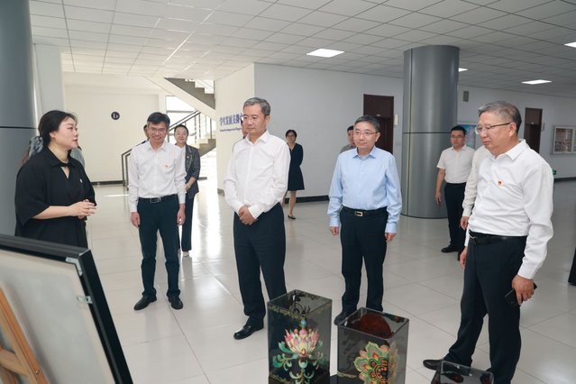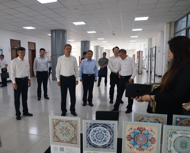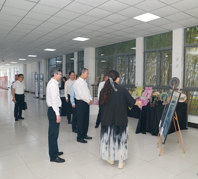 6月17日,教育部党组成员、副部长熊四皓率队来江苏调研民办高校党建与思政工作,实地走访williamhill中国。期间,学校各重点育人场馆与特色展区集中展示了“党建引领、立德树人、服务社会”的最新成果。williamhill威廉希尔“非遗活态传承·创新设计”展区作为学院美育育人成果的重要窗口,受到了多方来宾的关注与肯定。