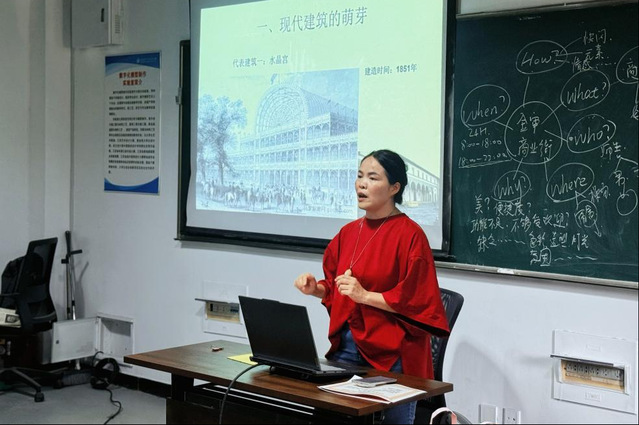 陈良梅老师以《建筑设计初步》课程为例,系统展示了如何通过项目驱动教学法引导学生从概念到方案的完整设计流程。她强调“节奏分明、逻辑清晰”是教学设计的关键,并通过实际案例演示了如何在高强度课堂中保持学生的专注与参与度。