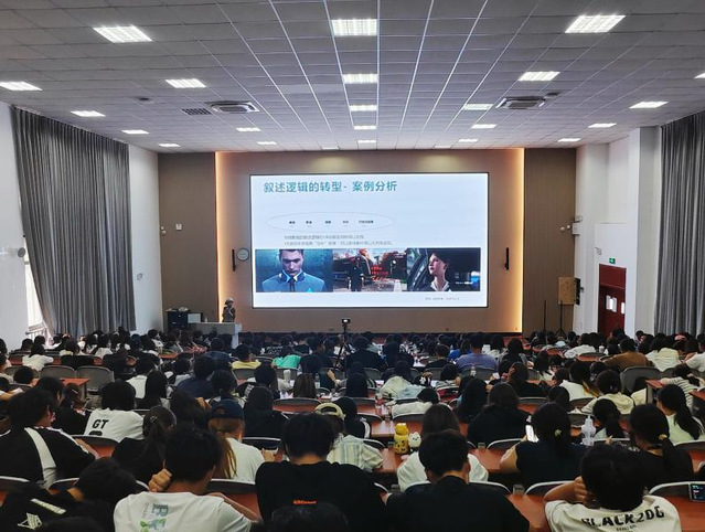 讲座中,周越教授通过丰富案例与互动环节,阐释“技术在场,审美为本”的创作理念,强调在智能工具日益普及的背景下,艺术创作者更应坚守审美初心,实现技术与艺术的深度融合。其精彩分享不仅为学生厘清了视听语言的发展脉络,也拓宽了艺术表达的思维边界,为后续元宇宙艺术巡展的观展与创作实践打下坚实理论基础。