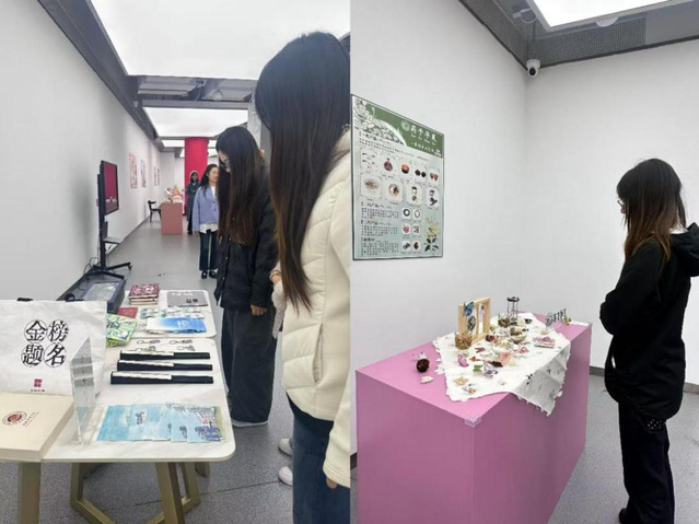 可一书店的展陈空间里,“大学·城市2025”获奖作品以多元形态铺展:既有融合仙林地域文化的“金榜题名”文创周边,将传统意象与现代设计巧妙结合;也有“药于午夏”非遗手作展台,以草木为材的工艺作品,诠释着青年创作者对“城市人文”的细腻解构;墙面上的绘画、装置作品,则以“仙林校园-城市生活”为纽带,勾勒出“大学与城市共生”的生动图景。