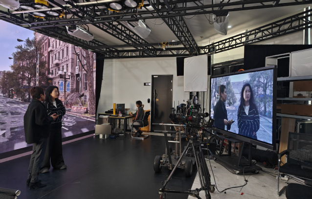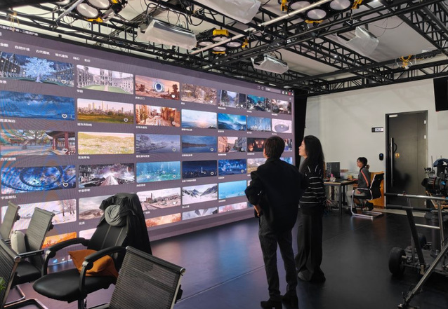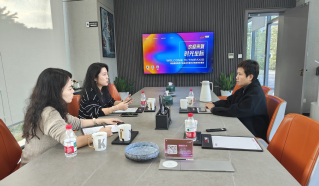 随后,在张宏梅总经理陪同下,张文婷与刘聪老师实地参观时光坐标核心实操区域与工作场景,全面了解企业技术架构、生产流程及项目运作模式。企业重点展示影像技术研发、虚拟场景构建、数字内容制作等核心业务的实践成果,直观呈现科技与艺术融合的前沿趋势,进一步为校企教学合作与项目对接找准了发力点。