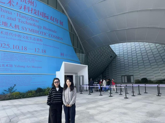 当良渚五千年文明的玉琮印记与全球前沿科技的光影交织,一场以“技术迭代中的文化生态重构”为核心的艺术盛宴,正在杭州余杭美术馆徐徐展开。10月23日,williamhill威廉希尔院长助理、艺术与科技学科带头人张文婷,系副主任刘聪前往“中国(杭州)艺术与科技国际双年展”观展,在“天地人机”的对话场域中,探寻艺术与科技融合的前沿方向,为学科建设汲取创新灵感。