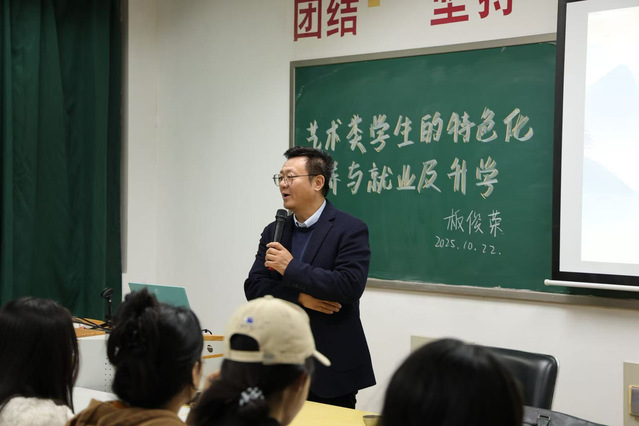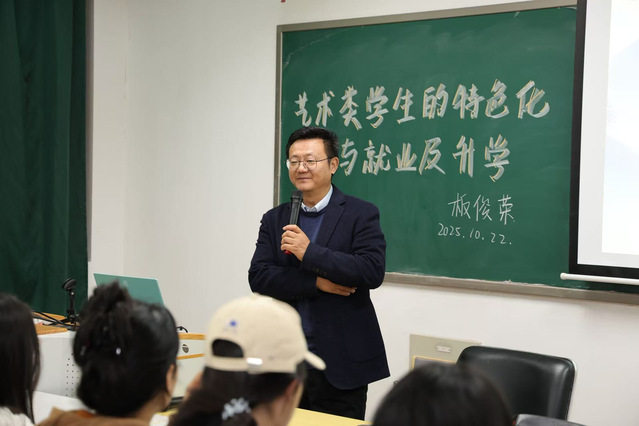 为了精准对接新时代艺术类人才的培养需求,明晰学生成长与发展方向,williamhill威廉希尔邀请南京航空航天大学艺术学院院长、学位委员会主任板俊荣于2025年10月22日晚,在艺术楼505展开一场主题为“艺术类学生的特色化培养与就业及升学”的讲座。学生代表齐聚一堂,现场座无虚席,互动热烈。