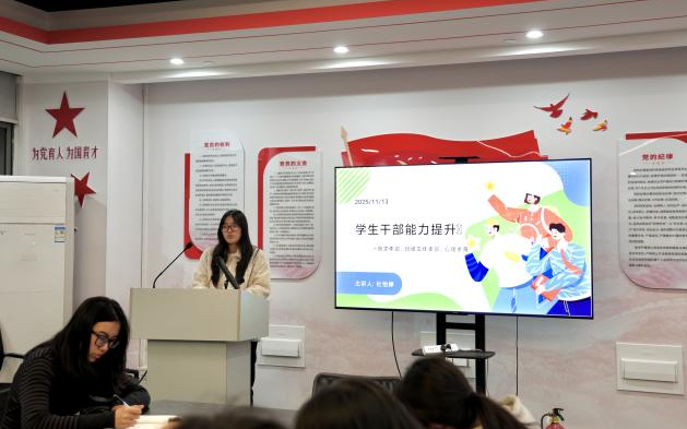 会上,杜怡婷老师以生动案例剖析了文体活动策划、班级生活服务、团队协作沟通等核心工作的关键点,强调文体活动在校园文化生活中的重要性,以及如何策划落实高品质文体活动谈自己的见解,强调学生干部要立足“服务同学、助力学院”的初心,既要明确自身“桥梁纽带”的职责定位,也要锤炼“想干事、能干事、干成事”的过硬本领。