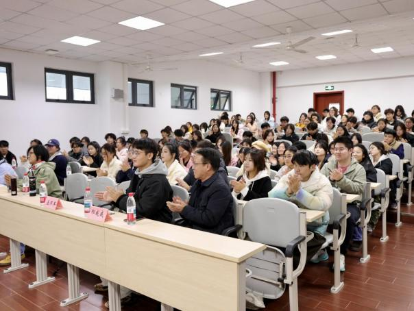 陈教授特别赞许金审师生的“青春豪情”:学子通宵读书后拒绝休息,提议“走湖”迎朝霞,齐声呐喊“太阳,你早!南京,你好!”的场景让他铭记至今。他还分享带南外学生赴日参加夏令营的经历:日本国会内监会长演讲时突然转用中文,引用毛泽东同志寄语青年的名言,这份跨越国界的期许让现场学子深受触动。