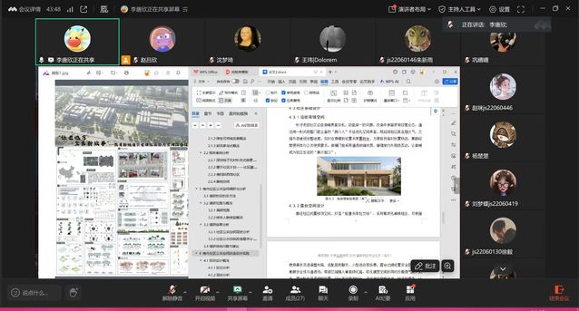 屏幕另一端,由15位专业教师组成的答辩委员会秉持严谨的学术态度,认真听取了每位同学的汇报。评委老师们不仅从设计理念的创新性、方案推导的逻辑性、技术图纸的规范性、成果表达的完整性等专业角度进行点评和提问,更就设计深化方向、理论依据夯实、细节处理完善等方面提出了诸多宝贵而中肯的修改建议。师生之间虽隔屏幕,但问答互动热烈、讨论深入,学术氛围浓厚。线上平台的功能,如即时聊天、文件传输等,也为高效的交流提供了便利。