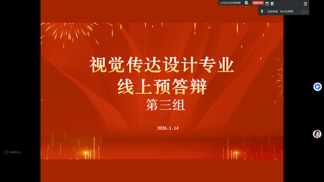 2026年1月14日下午,视觉传达设计专业2022级毕业设计(论文)预答辩工作通过线上会议形式顺利开展。108名毕业生与11名专业答辩教师齐聚云端,在精心设置的5个答辩小组中完成了此次毕业(设计)的关键考核。